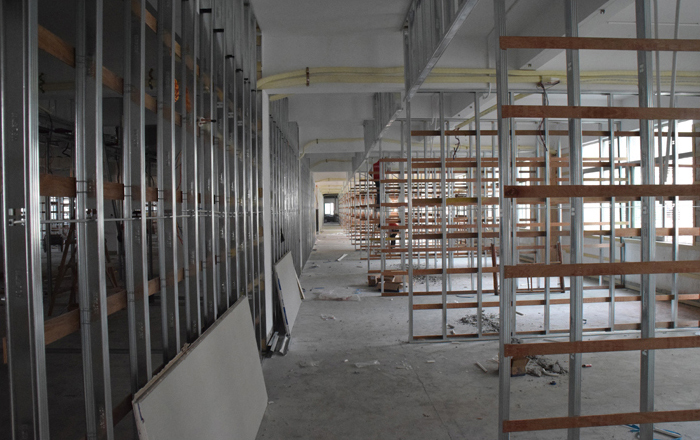 ▼ 2017年02月11日,輕鋼龍骨隔墻。